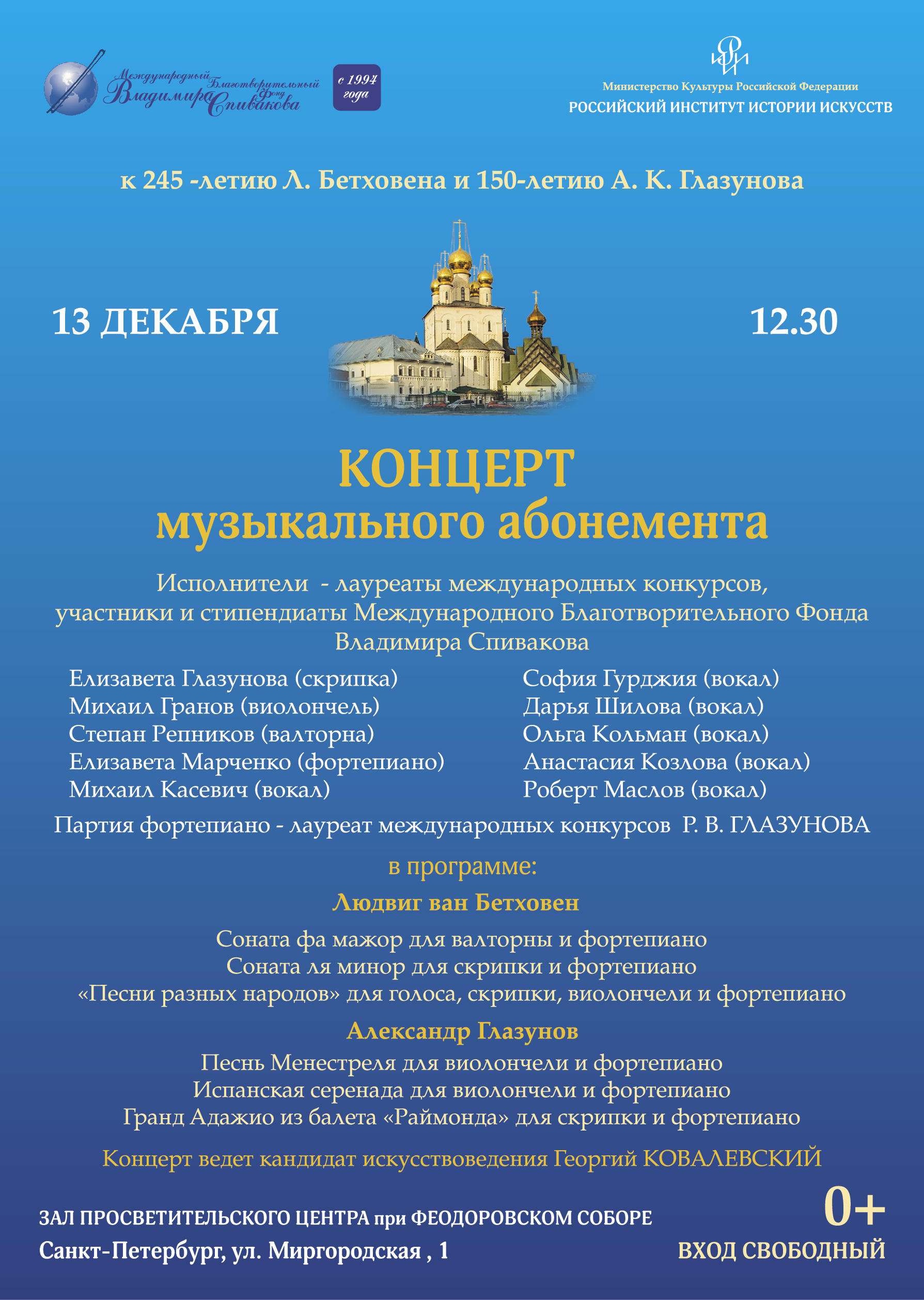 Концерт к 245-летию Л. ван Бетховена и 150-летию А.К. Глазунова. Выступают стипендиаты, участники концертных программ Фонда