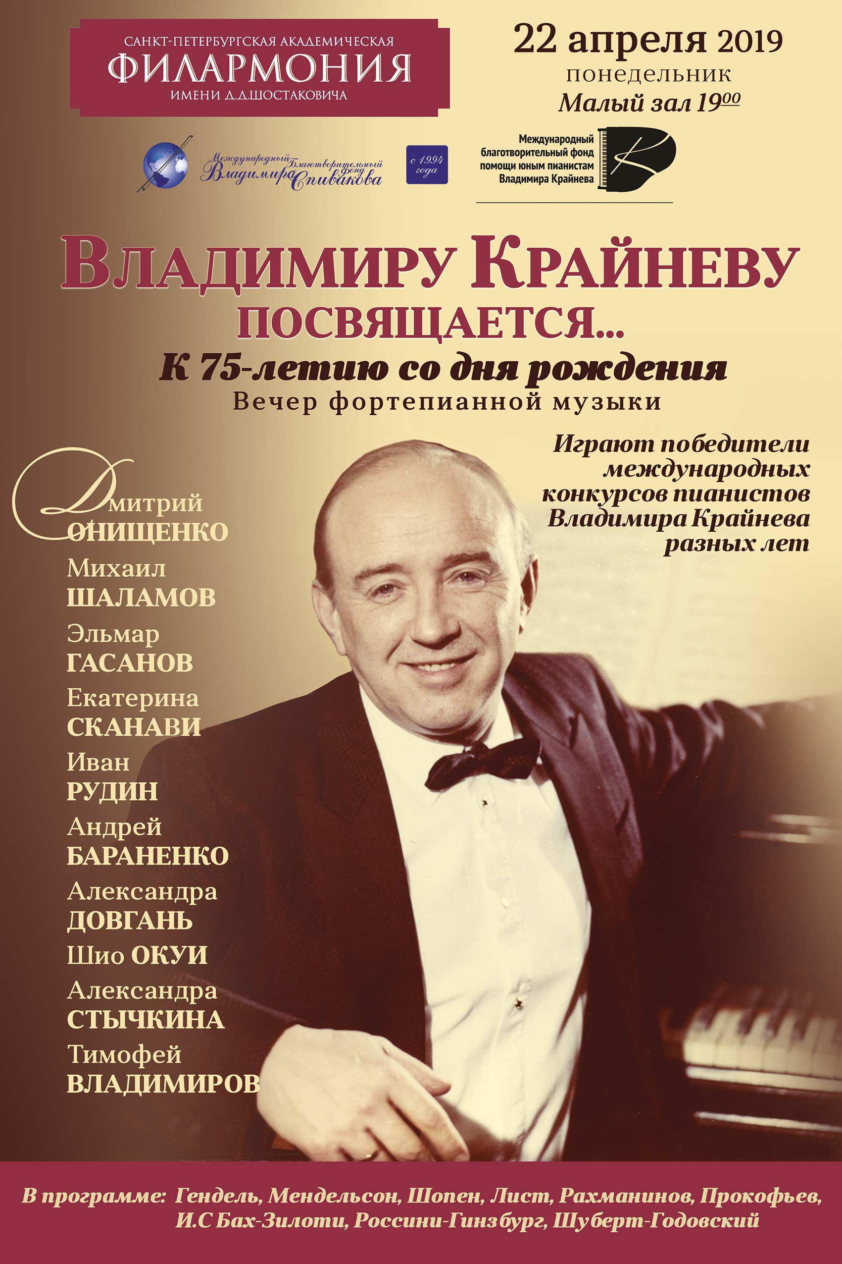 Выступают лауреаты международных конкурсов, ученики Владимира Крайнева, а также лауреаты и победители трех Международных конкурсов юных пианистов В.Крайнева в Москве.