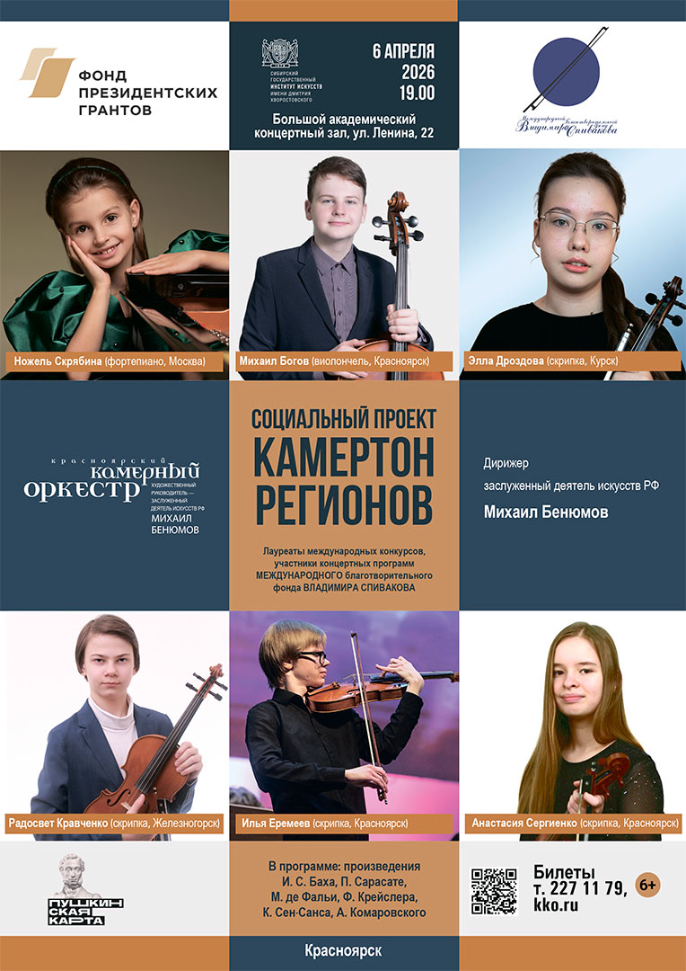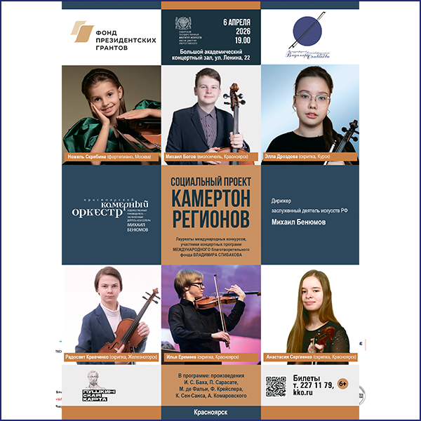 Красноярский камерный оркестр (художественный руководитель и главный дирижер — заслуженный деятель искусств РФ Михаил Бенюмов).