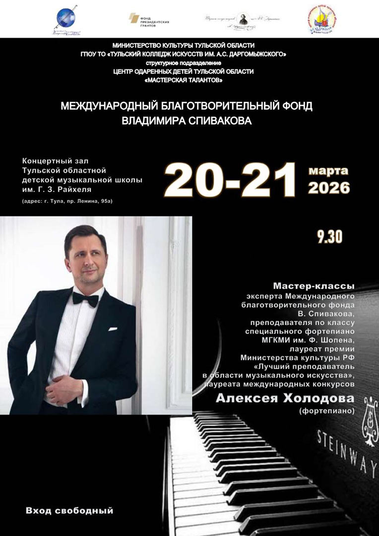 Мастер-классы преподавателя специального фортепиано в ДМШ МГКМИ им. Ф. Шопена, лауреата премии Минкультуры РФ Алексея Холодова (фортепиано), проект «Камертон регионов» (реализуется при поддержке Фонда президентских грантов)