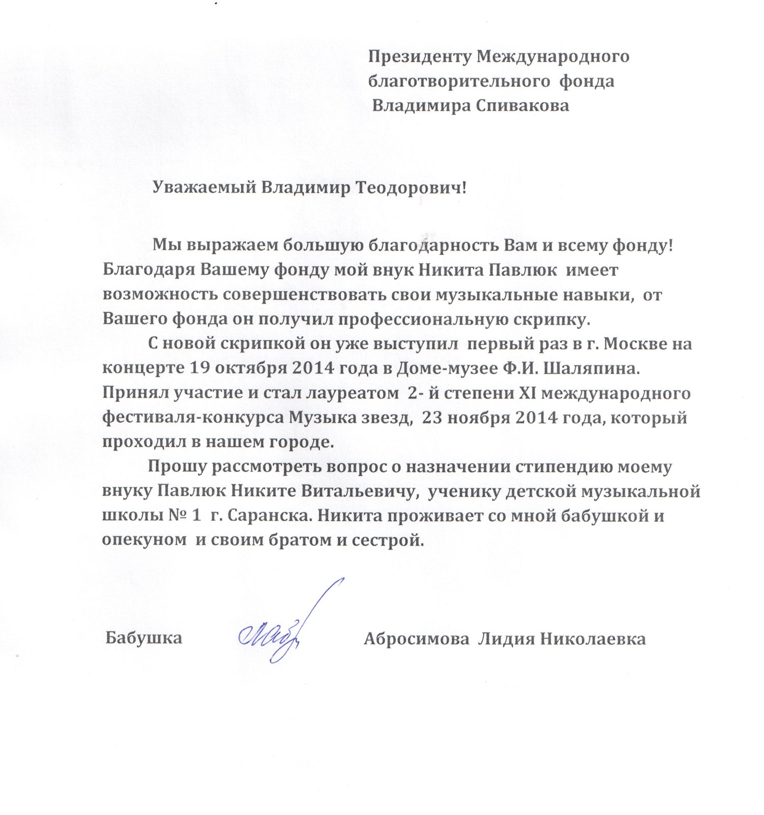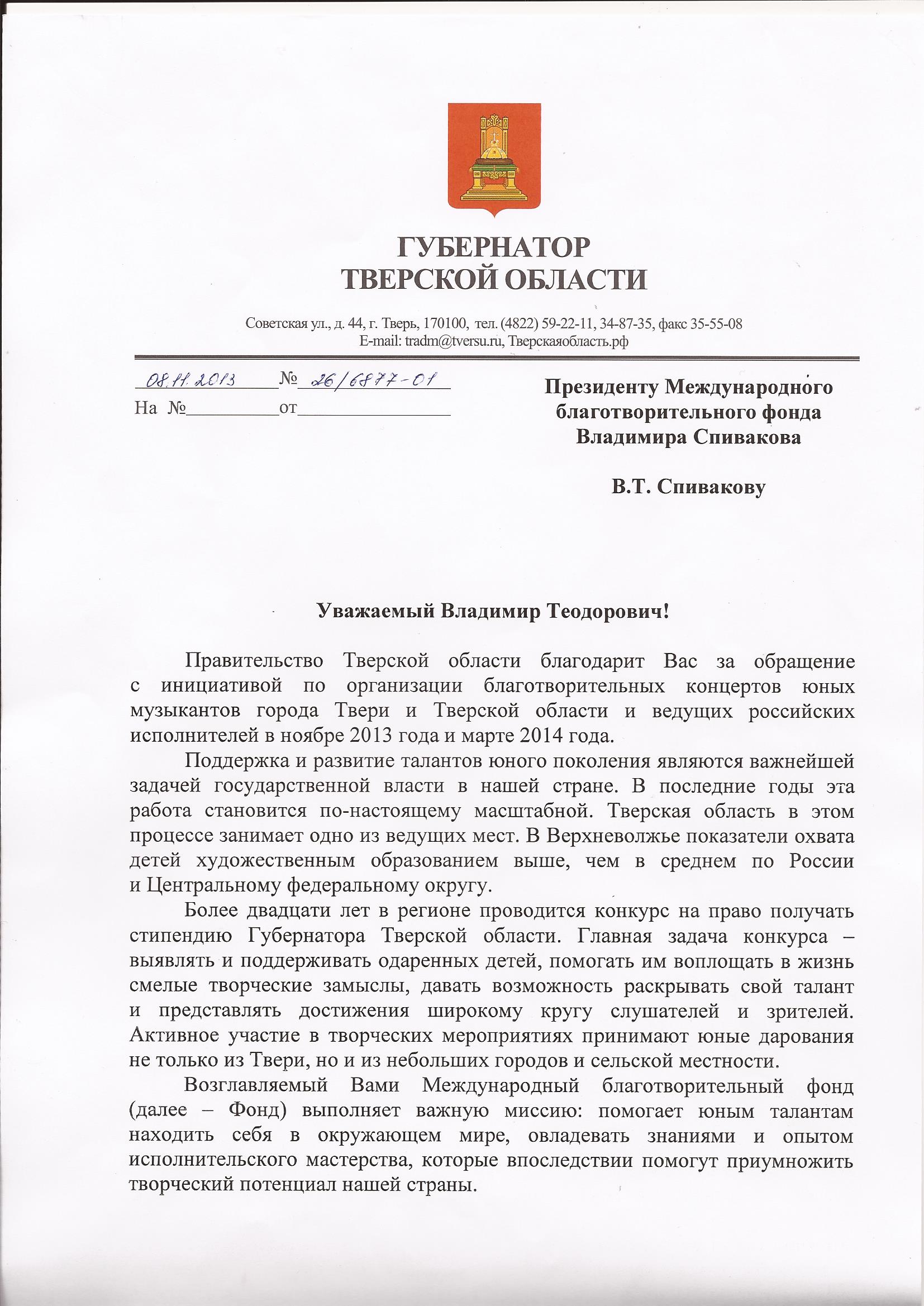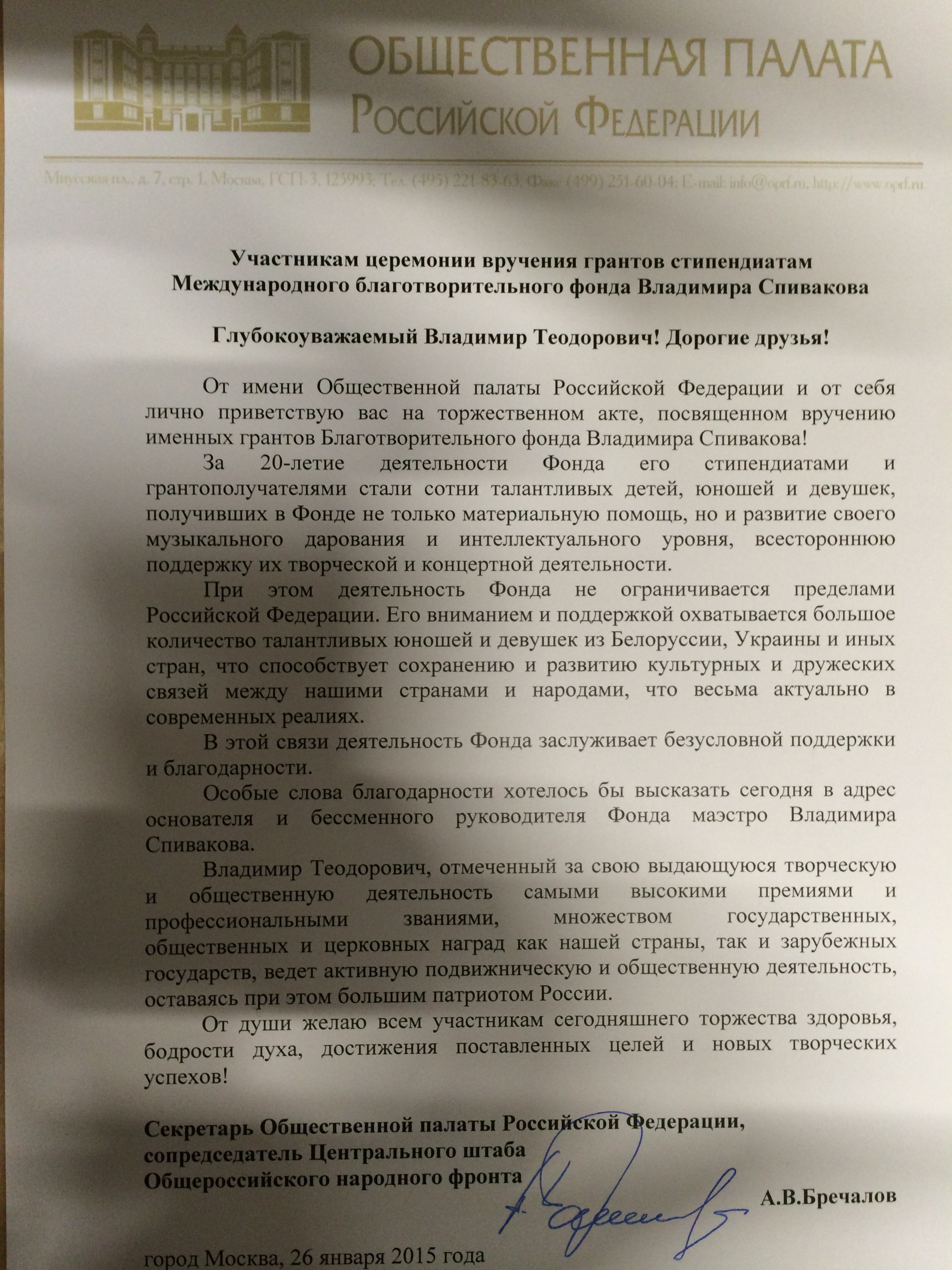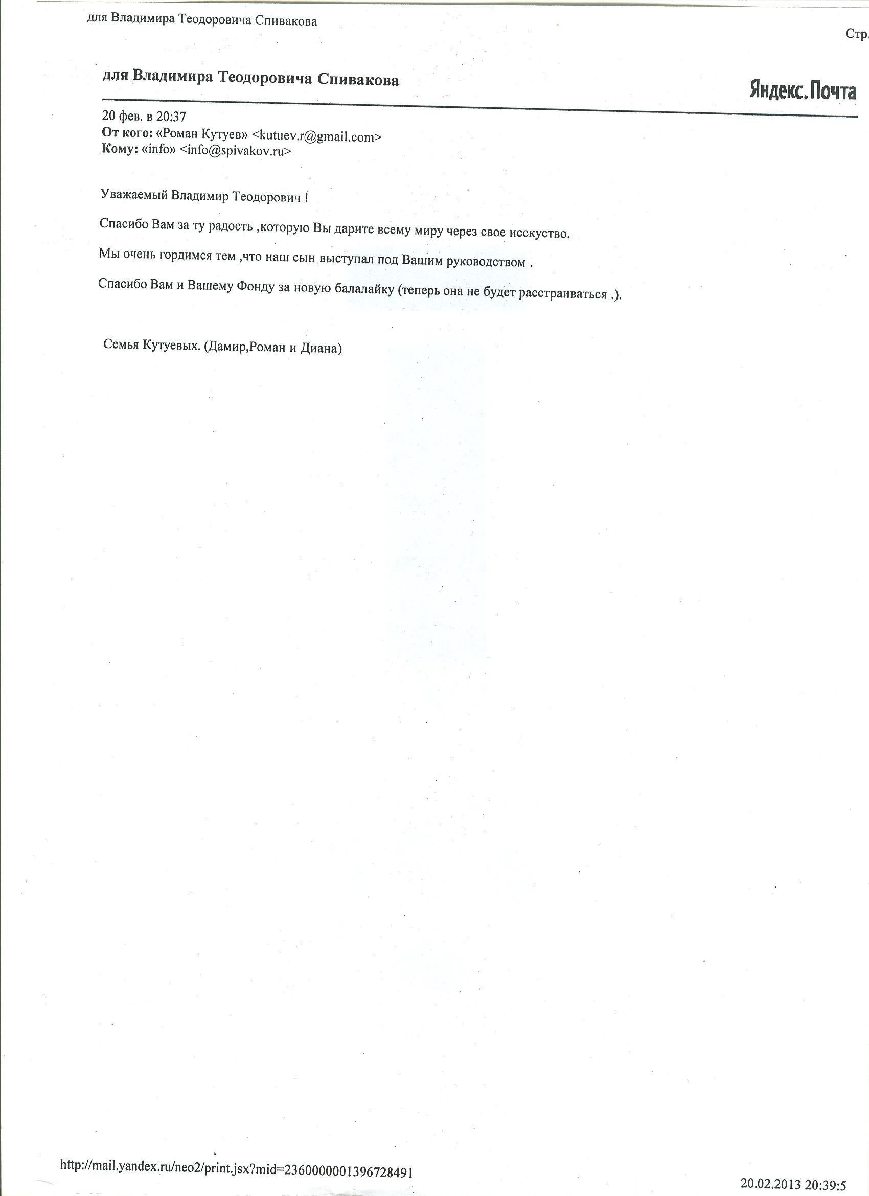 Здравствуйте Уважаемые учредители и сотрудники фонда В.Спивакова!