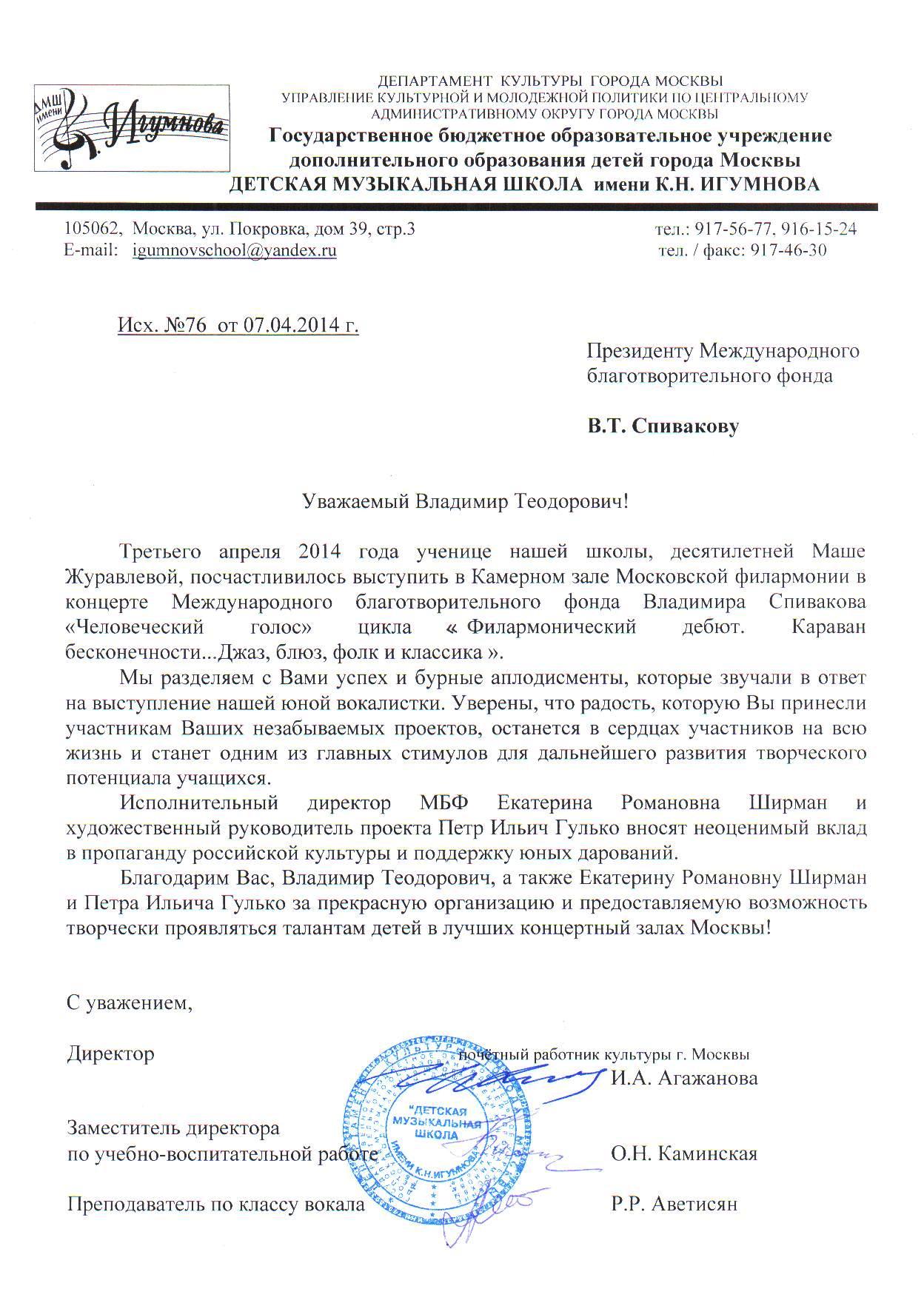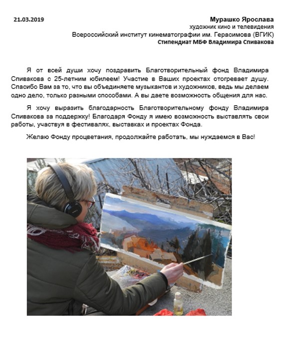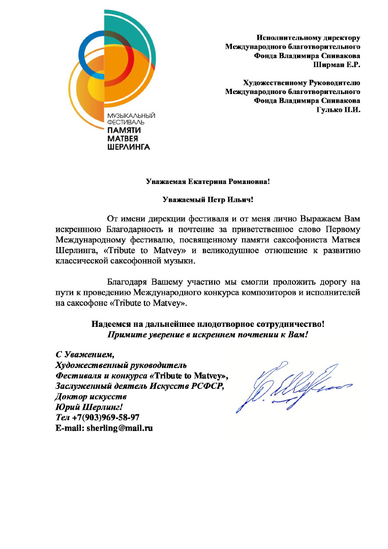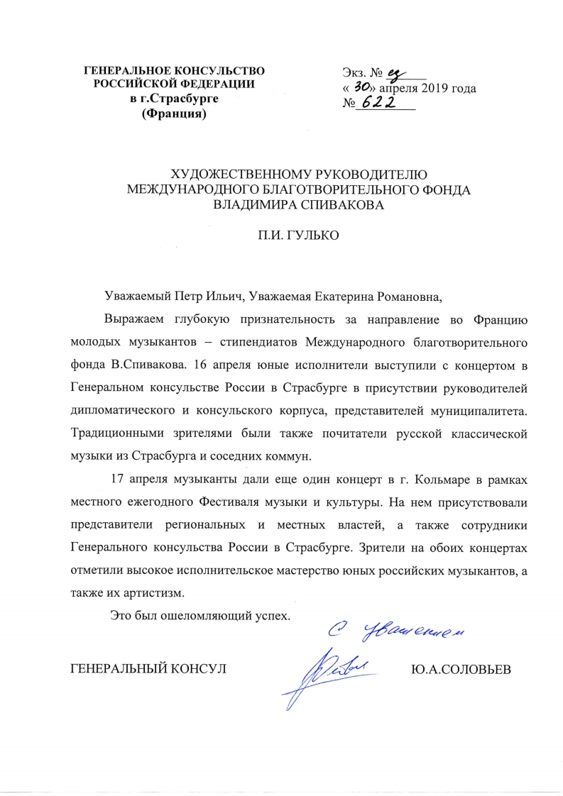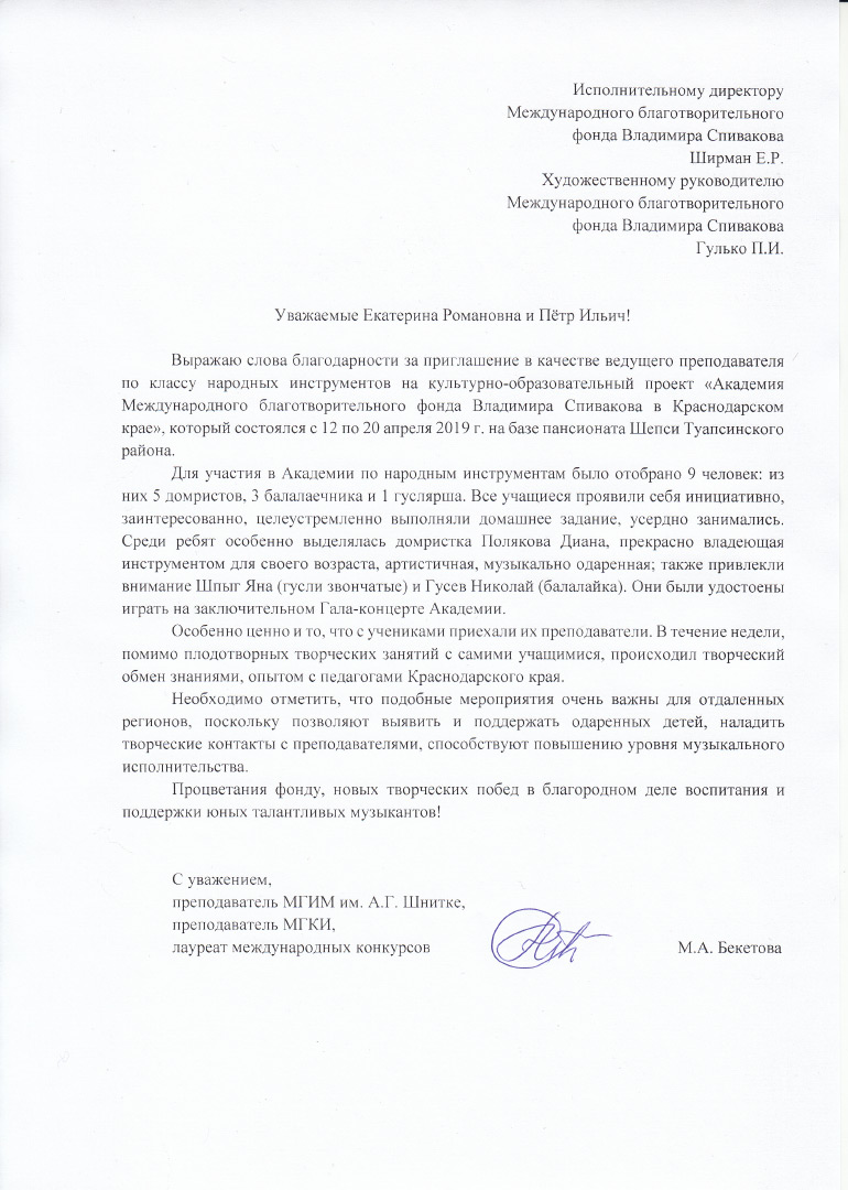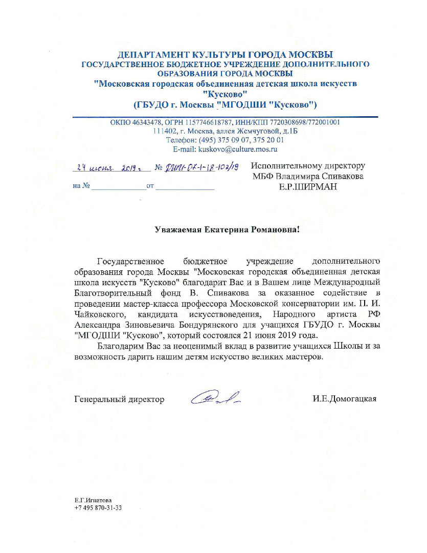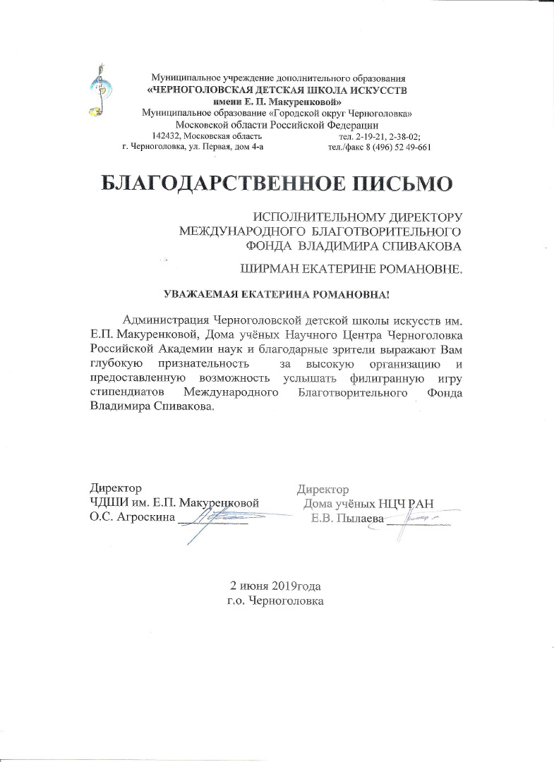 Спасибо Вам и Международному благотворительному фонду В.Спивакова за организацию и поддержку таких замечательных проектов! С уважением и благодарностью,