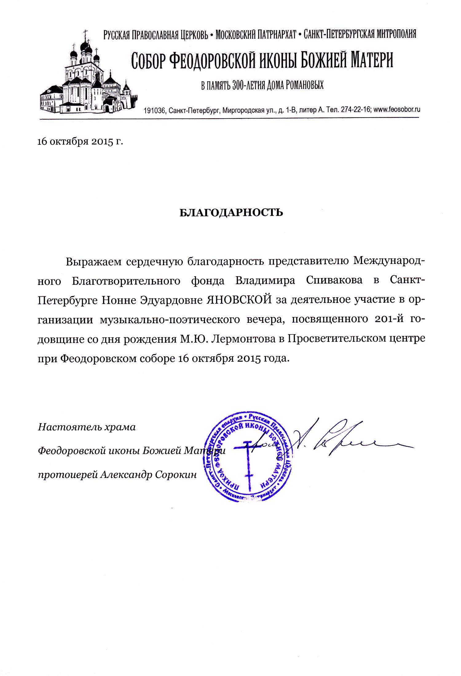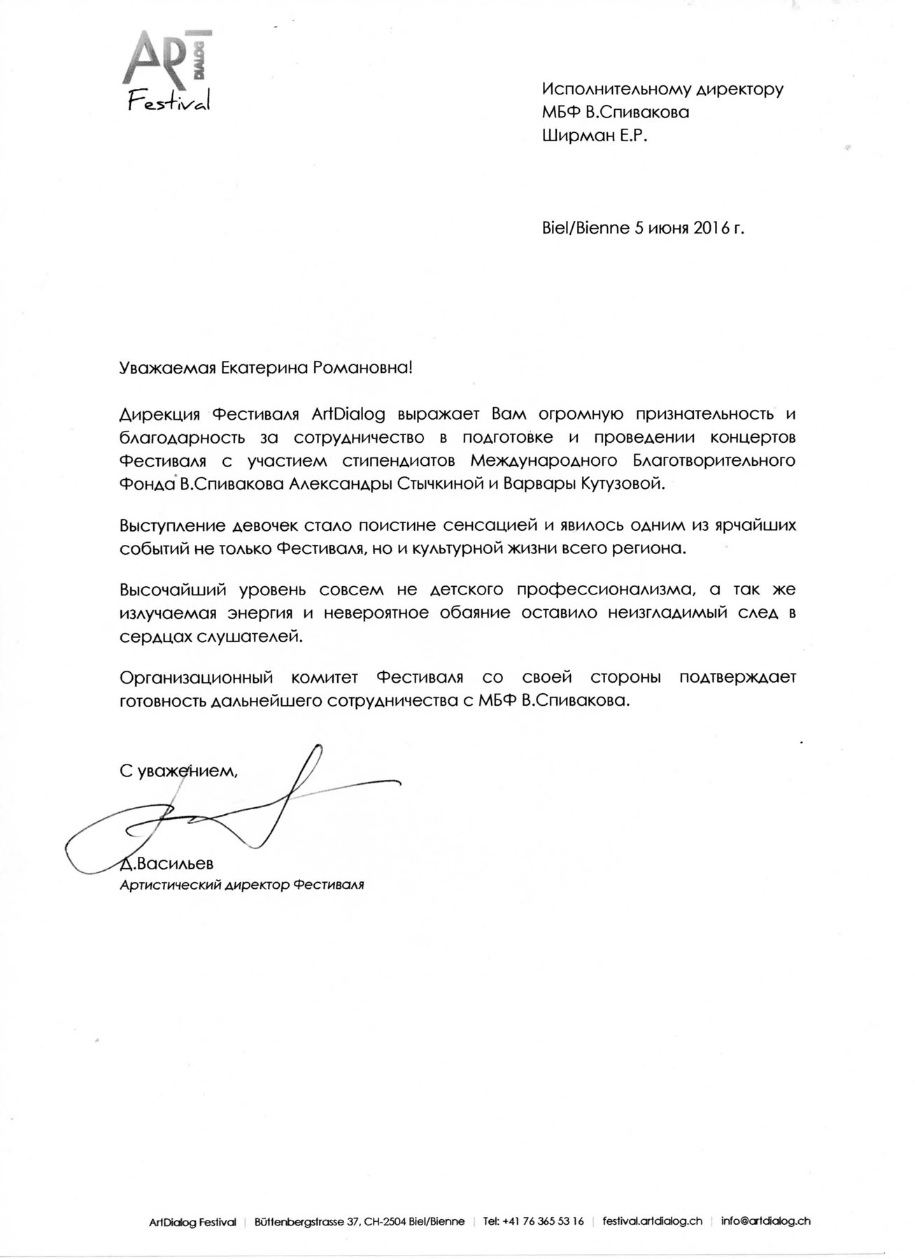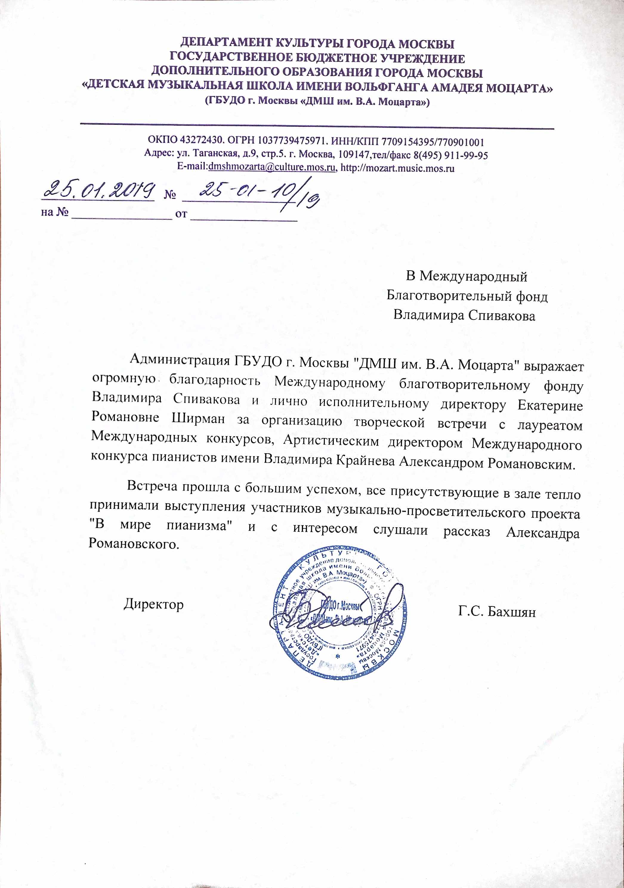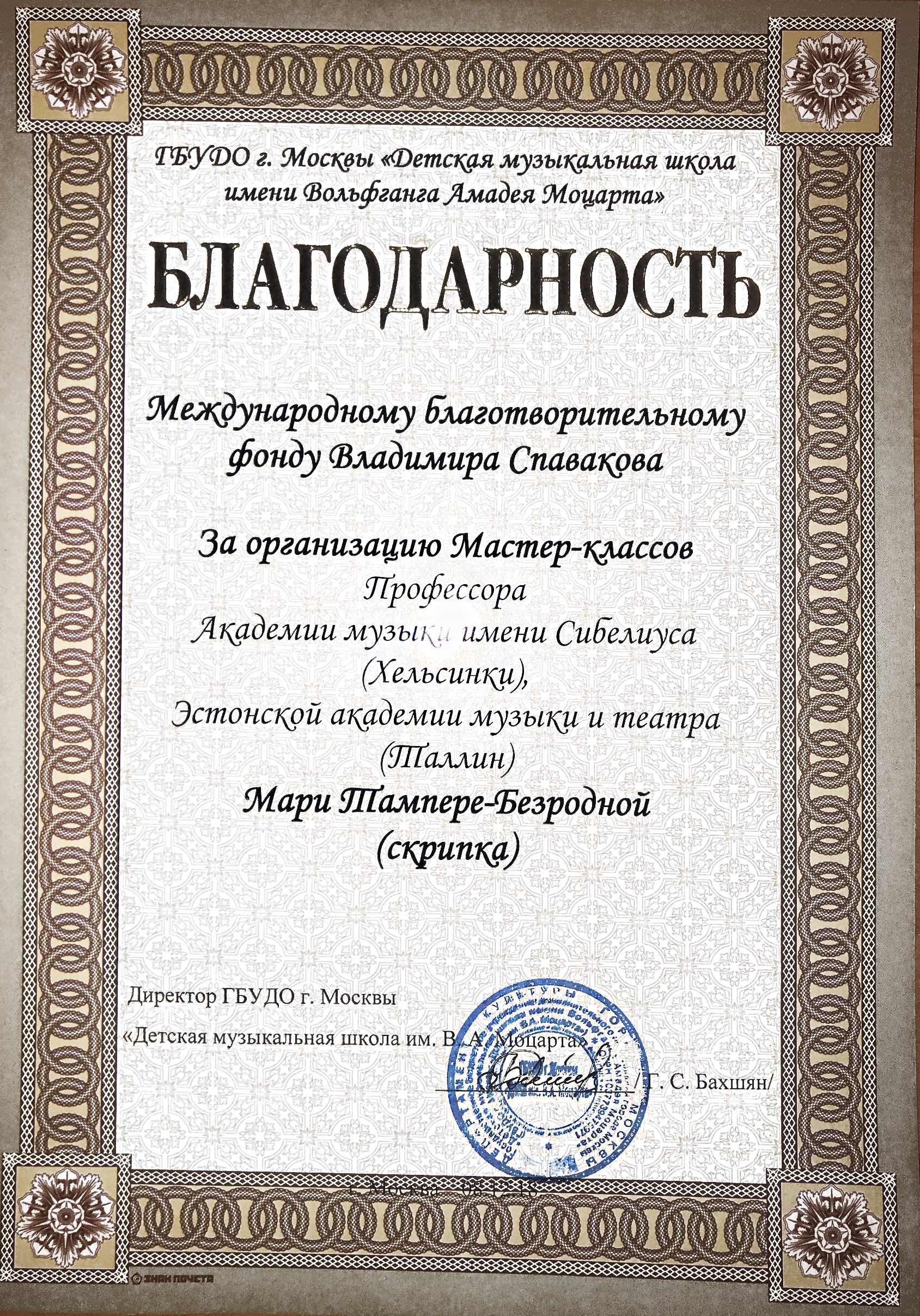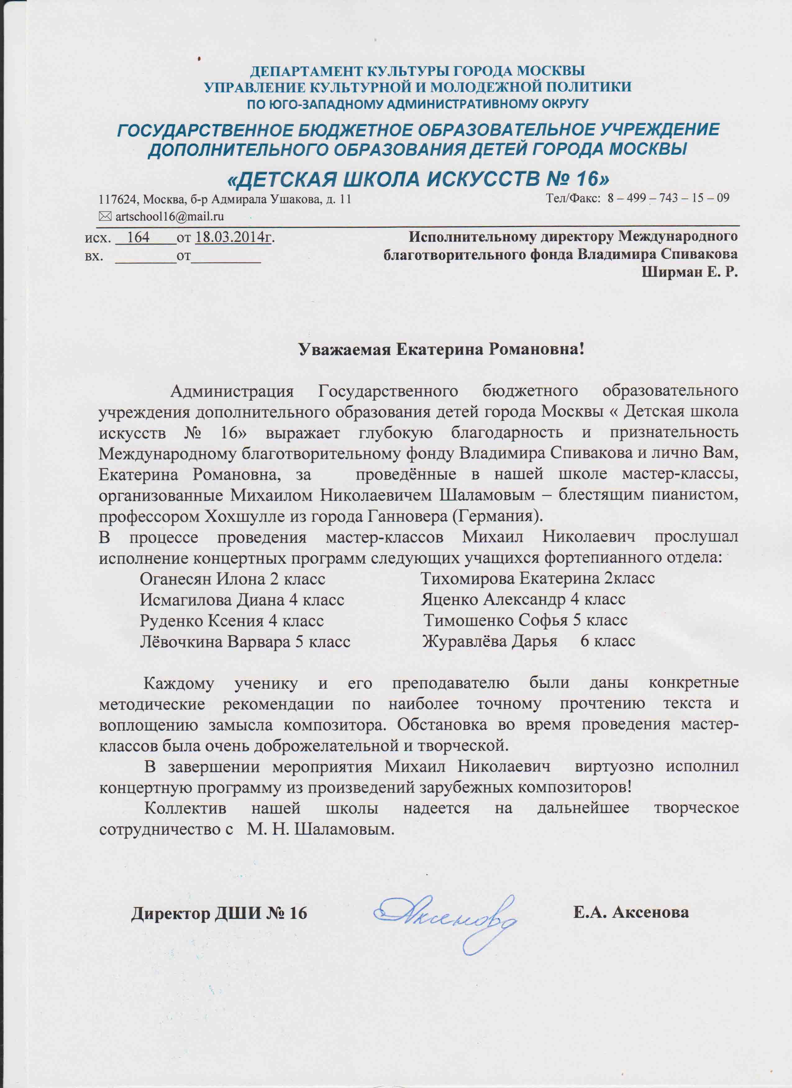 Спасибо Вам и Международному благотворительному фонду В.Спивакова за организацию и поддержку таких замечательных проектов! С уважением и благодарностью,