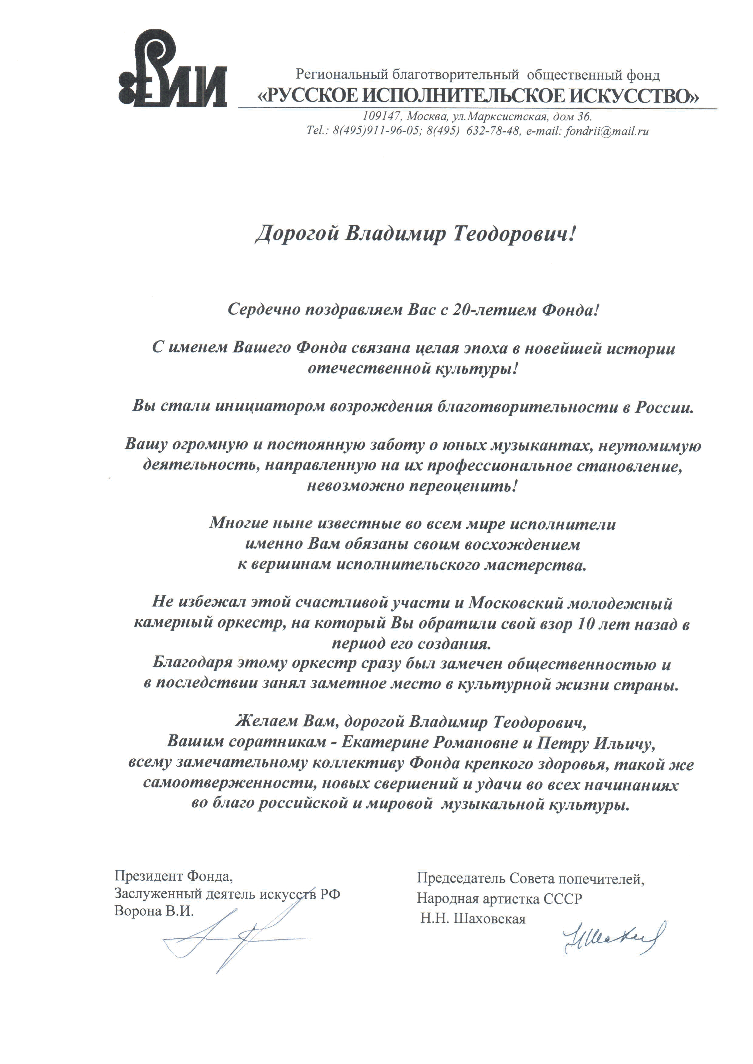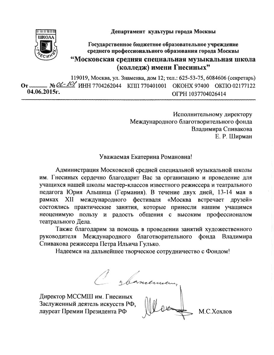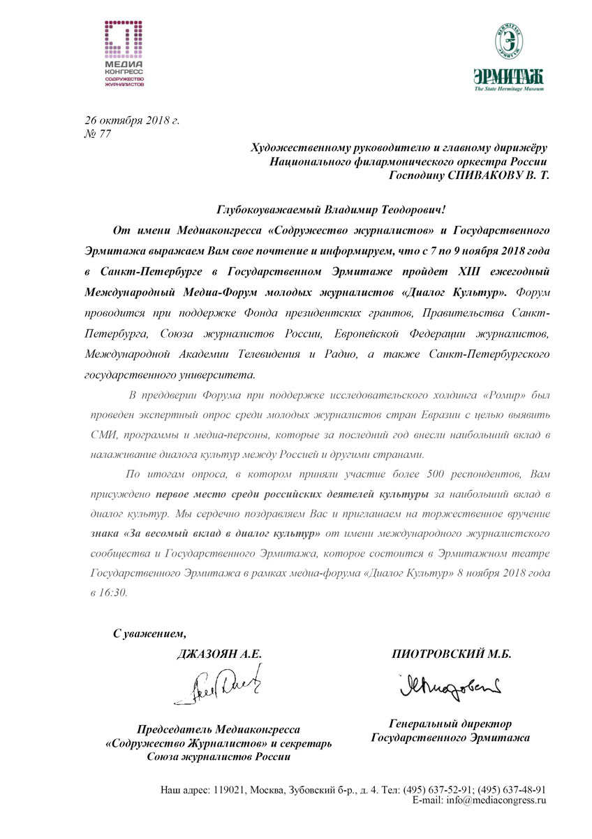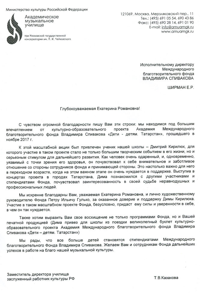 Уважаемые сотрудники Фонда Спивакова!