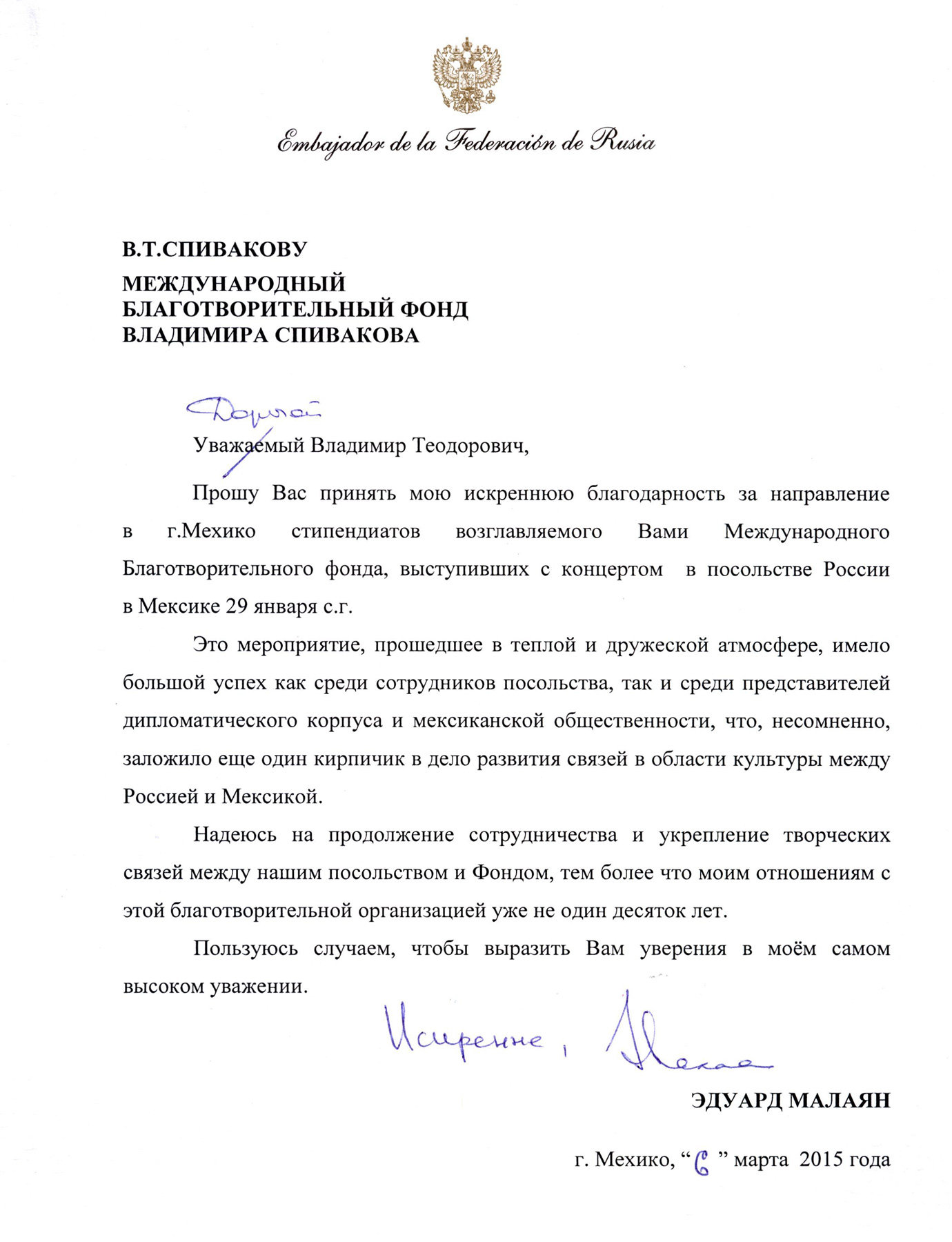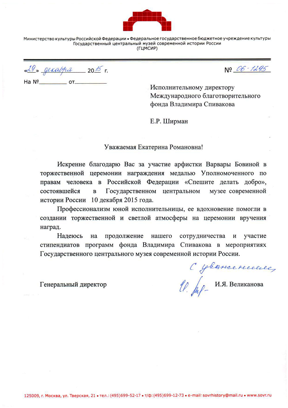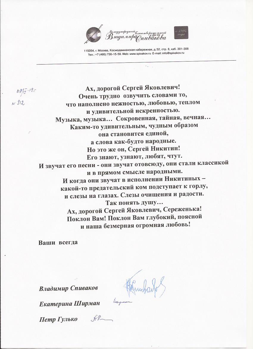 Уважаемые сотрудники Фонда Спивакова!