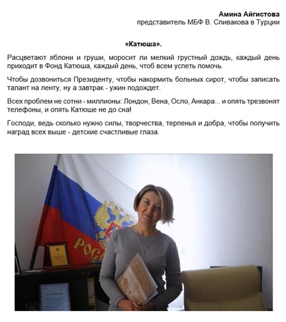 Алиса Садикова всегда с теплом и огромной любовью вспоминает то добро, которое для неё делали сотрудники Фонда и лично Екатерина Романовна и Петр Ильич!