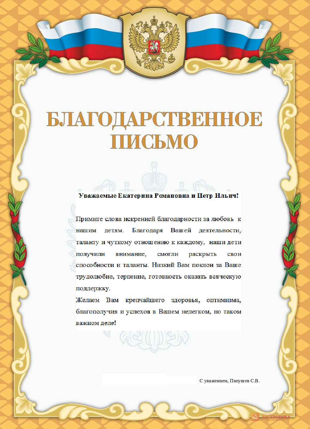 Уважаемые Екатерина Романовна, Пётр Ильич!
