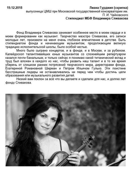 стипендиат МБФ В. Спивакова,