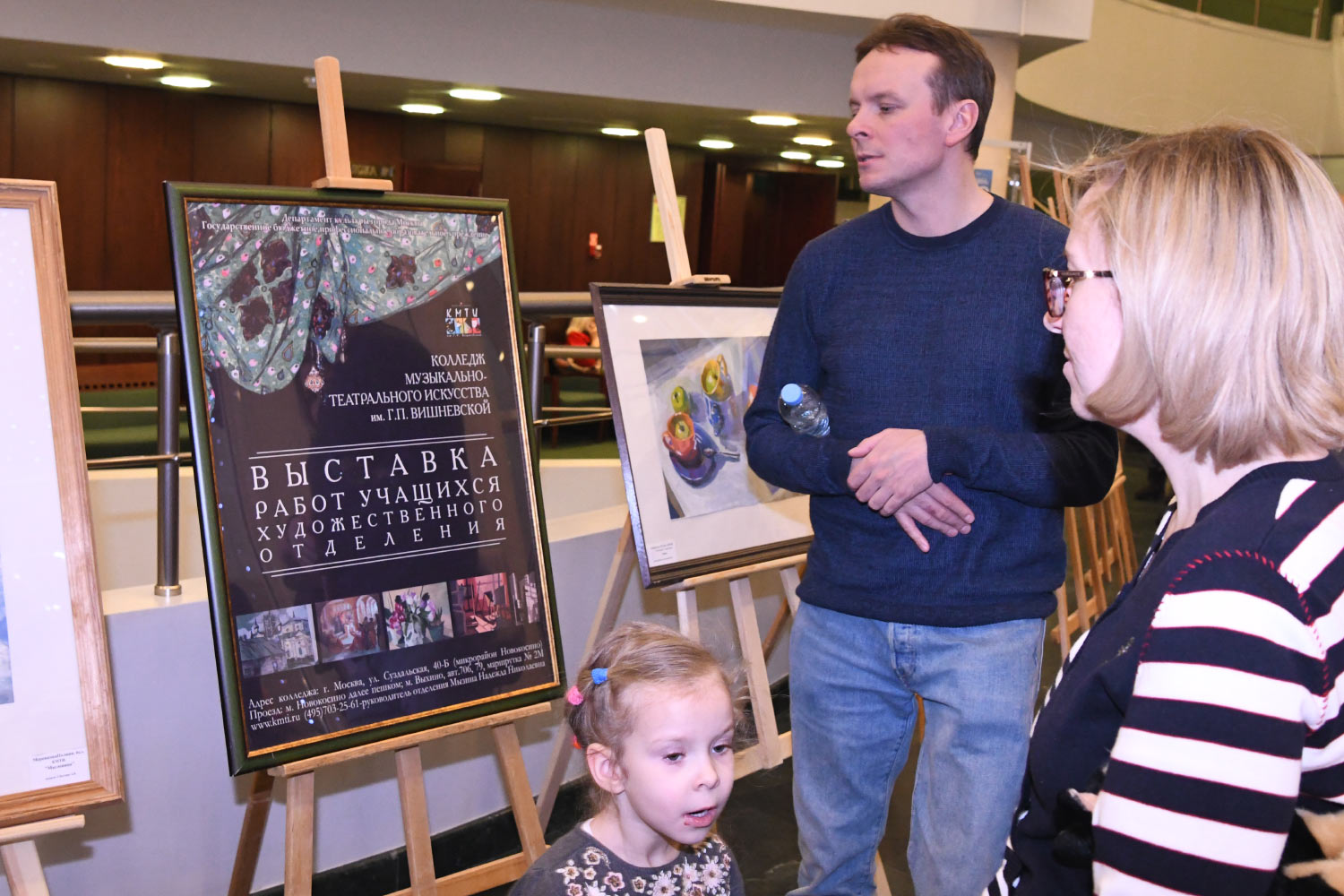 В фойе Камерного зала Фонд Владимира Спивакова представил выставку работ Колледжа музыкально-театрального искусства имени Г. П. Вишневской.