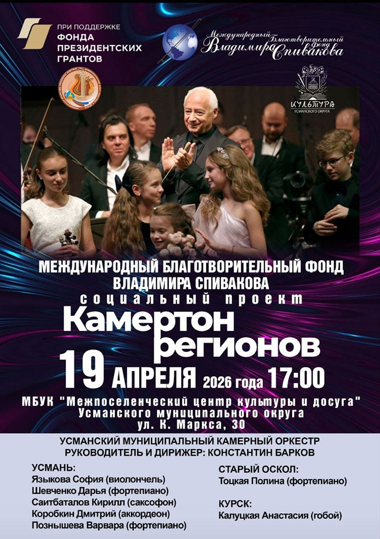 Апрель станет самым насыщенным на события проекта «Камертон регионов», который мы реализуем при поддержке Фонда президентских грантов: кроме концертов в Новосибирске, Красноярске и Туле, 18 и 19 апреля нас ждут мастер-классы и выступления талантливых ребят с оркестром в городе Усмани Липецкой области.