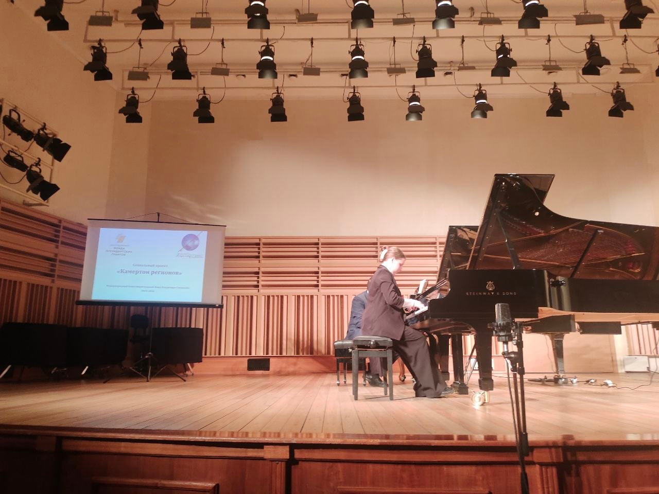 6 апреля на сцену Большого академического концертного зала с Красноярским камерным оркестром под управлением заслуженного деятеля искусств РФ Михаила Бенюмова вышли пианистка Ножель Скрябина, скрипачи Анастасия Сергиенко, Илья Еремеев, Радосвет Кравченко и Элла Дроздова и виолончелист Михаил Богов.