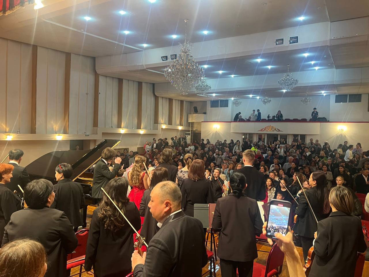 31 октября и 1 ноября стипендиаты и участники программ Фонда Владимира Спивакова посетили Бишкек. Юна Гурьянова (флейта), Степан Минашкин (скрипка), Виктория Свичкаренко (скрипка), Ярослав Марков (фортепиано) и Тимофей Утегенов (фортепиано) сначала выступили в Большом зале Кыргызской национальной консерватории им. К. Молдобасанова с Государственным академическим симфоническим оркестром им. А. Джумахматова под управлением Рахатбека Осмоналиева. А на следующий день ребята вышли на сцену Национального центра детей и юношества «Сейтек» вместе с творческими ансамблями центра.