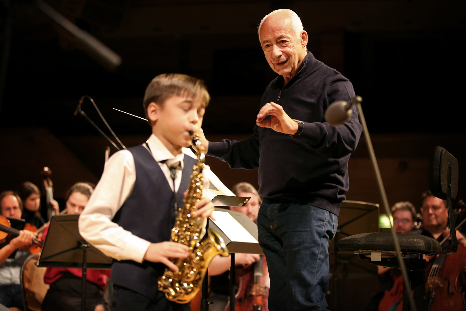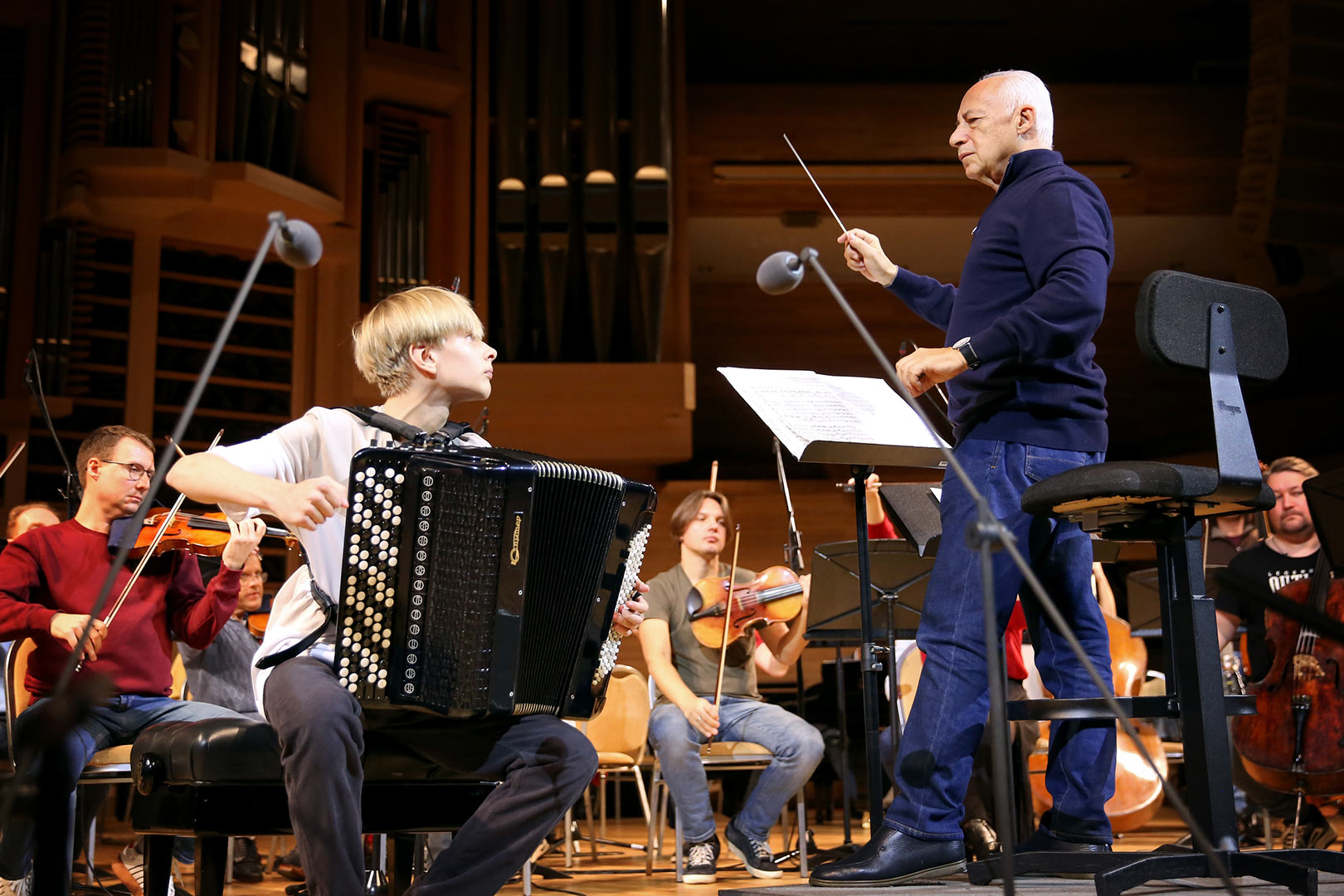 А проиллюстрируем этот пост первыми фотографиями с концерта-открытия. Точнее — с репетиции солистов-инструменталистов, которая состоялась в день концерта. Посмотрите, как работает Владимир Теодорович с будущими звездами мировой сцены.