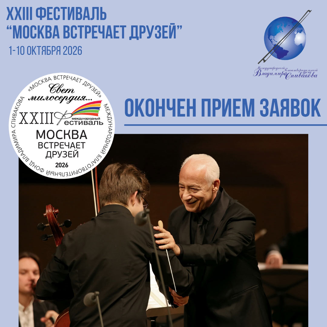 XXIII фестиваль «Москва встречает друзей» пройдет с 1 по 10 октября 2026 года. Состоятся девять живых концертов и две выставки, два онлайн-концерта и две онлайн-выставки, а также два онлайн-мастер-класса.