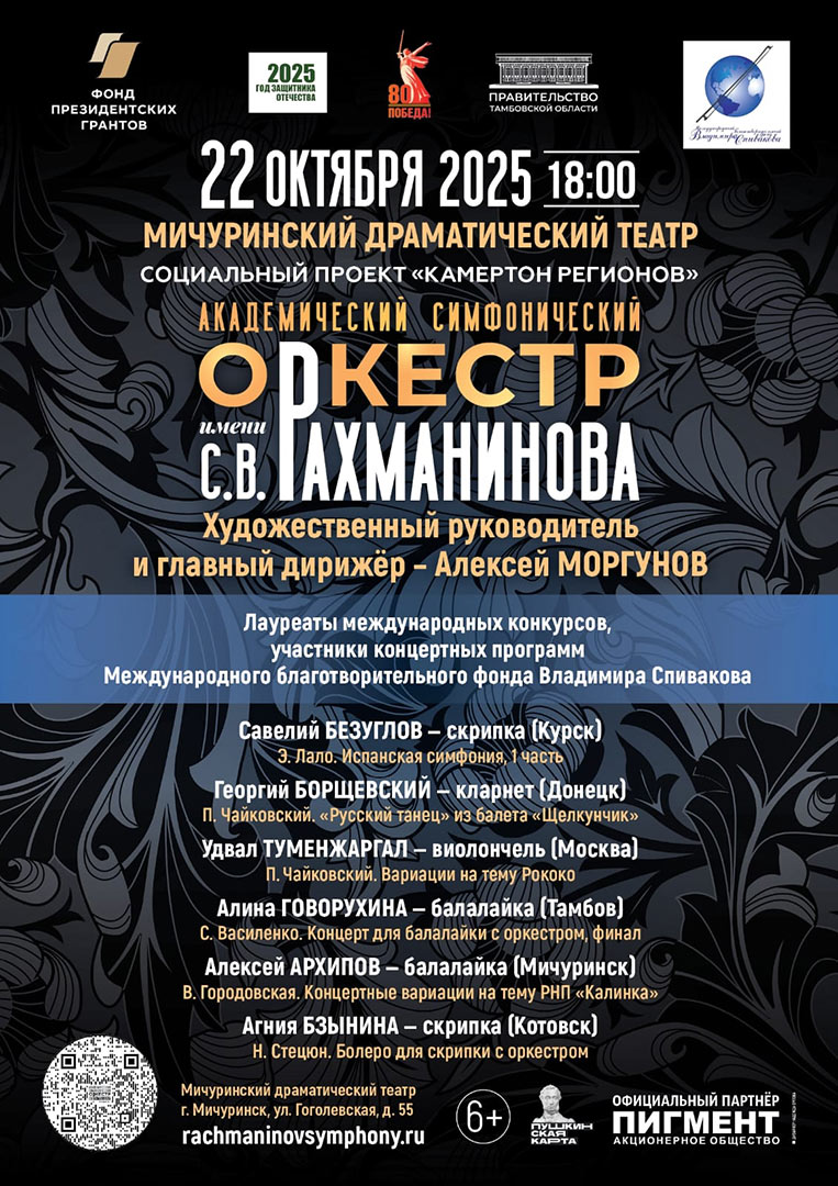 В Мичуринском драматическом театре 22 октября в 18:00 стартует концертная программа второй части социального проекта «Камертон регионов», который Фонд Владимира Спивакова реализует при поддержке Фонда президентских грантов.