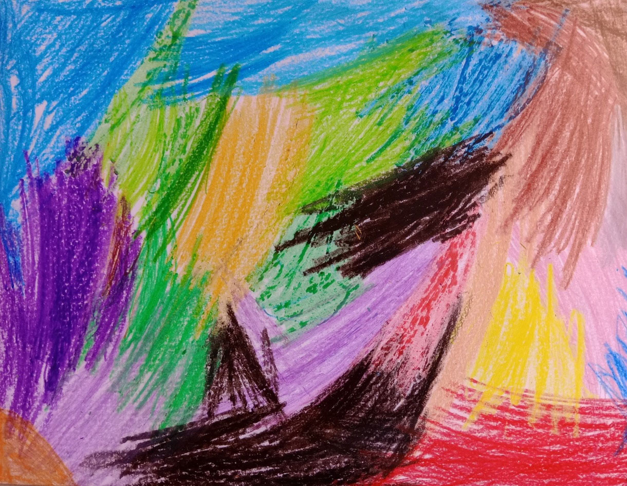 Первые две картины принадлежат кисти 5-летнего мальчика из Испании, из колледжа города Охихарес в провинции Гранада. Его зовут Марк Резник-Поляков, и это сын выдающегося музыканта, пианиста Андрея Резника, который многое делал для детей Фонда Спивакова.