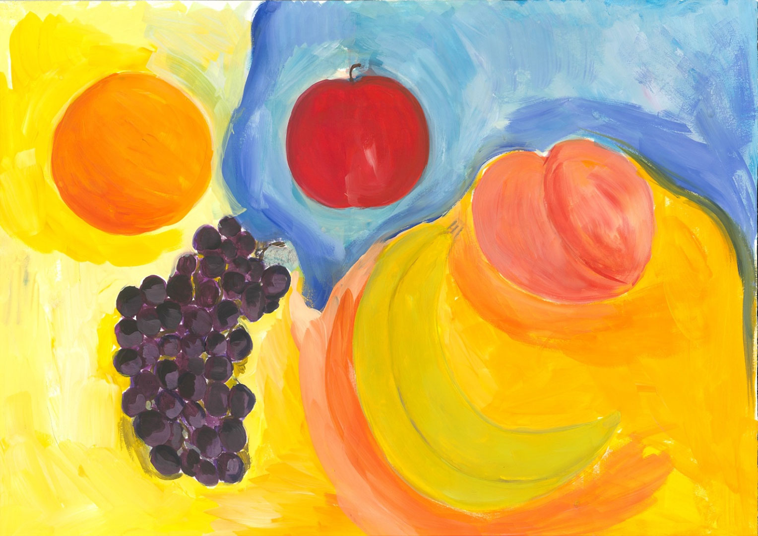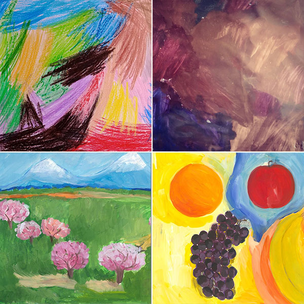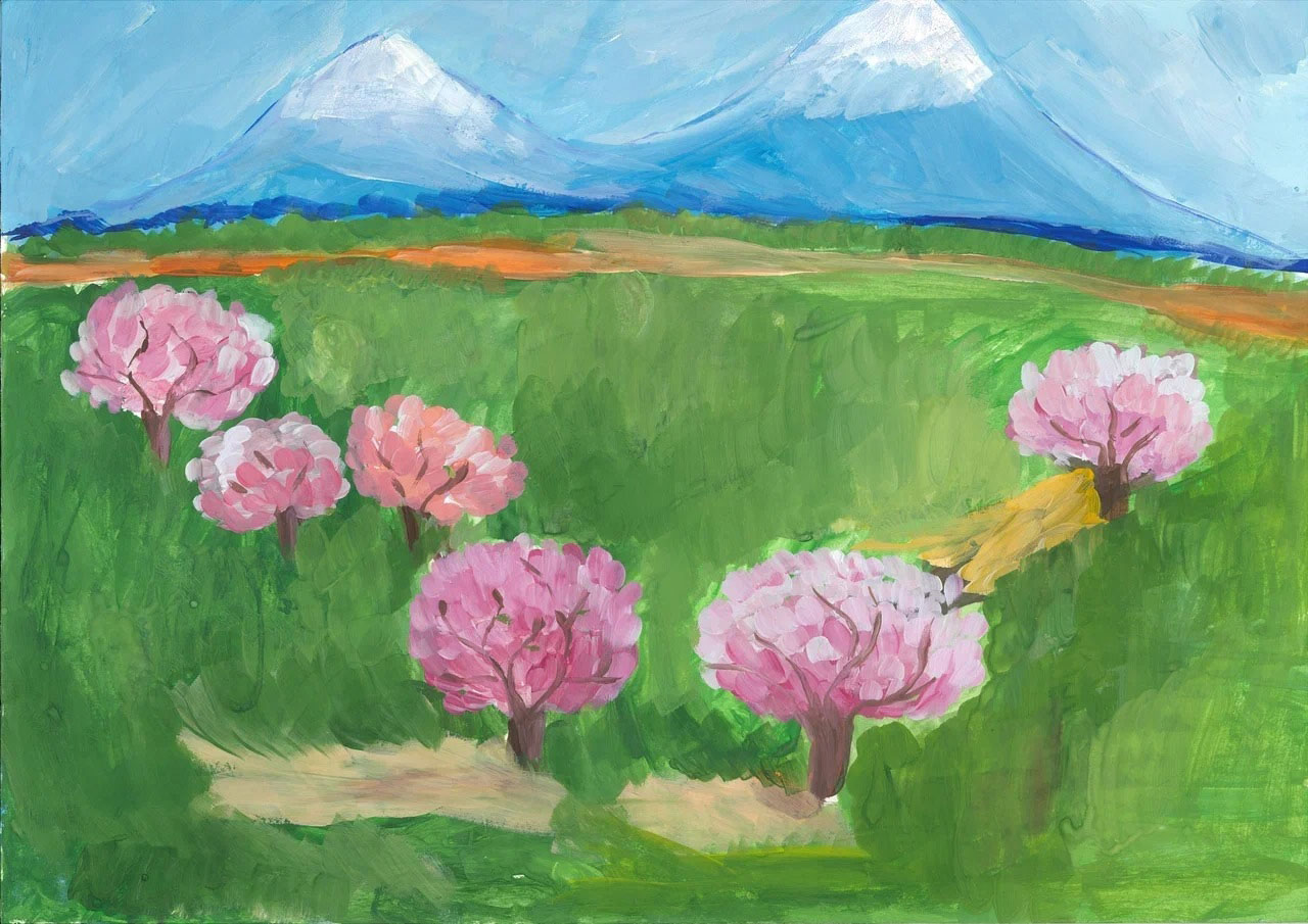 Третья картина, которую вы видите, называется «Арарат весной», и ее автор — 9-летняя Миа Бюрле, которая учится в Школе «Де Ревуар» в Монако. Она же и автор четвертой картины, которая называется «Натюрморт с фруктами».
