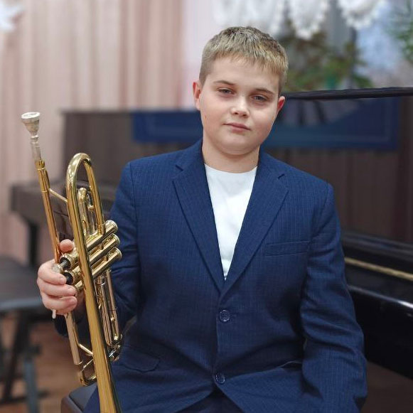 Сейчас Максиму 12 лет, он подаёт большие надежды. Но увы — у одарённого парня нет хорошего духового инструмента. Он репетирует на старой подержанной трубе.