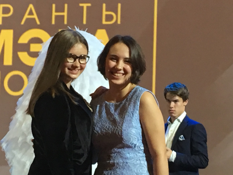 Варвара Визбор и Полина Сенатулова представляют Международный благотворительный фонд Владимира Спивакова на церемонии награждения.