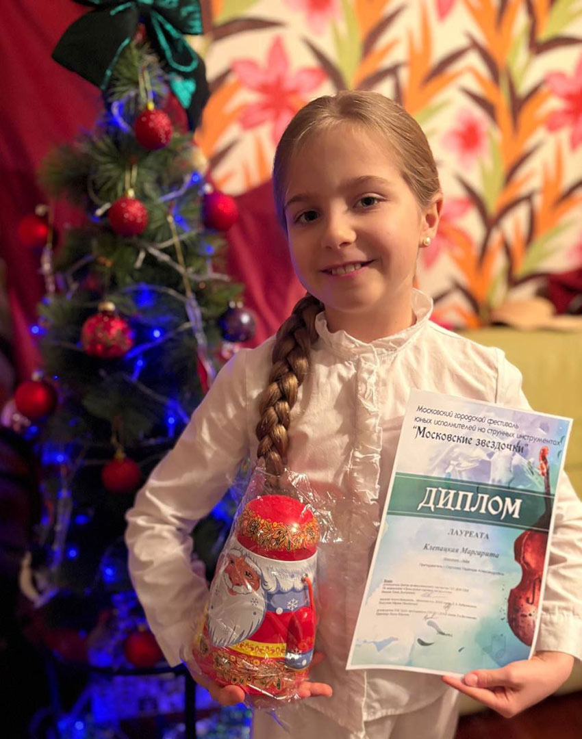 Лауреаты фестиваля юных исполнителей на струнных инструментах «Московские звездочки» получили сладкие новогодние подарки от Фонда Владимира Спивакова и Общества помощи русским детям.