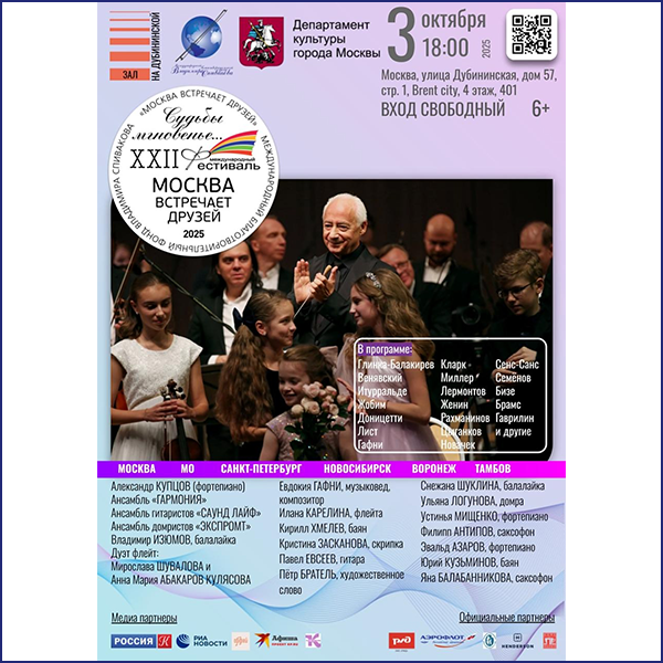 В этот день выступали ученики ЦМШ-АИИ: Ван Докай (фортепиано) Андриана Денисова (арфа) Ши Цзили (виолончель) Амина Сатторова (гобой) Александр Колесников (скрипка) Адриан Маркевич (виолончель) струнный квартет (Александр Корнюшко, Тимофей Ипатов, Сергей Большаков, Тихон Кидинов) трио (Олеся Виноградова, скрипка, Станислав Звонарев, флейта, Лю Шени, фортепиано) Фотографии концерта в Галерее искусств Зураба Церетели, 22 ноября 2025 года А на видео — выступление Александра Колесникова, который [...]