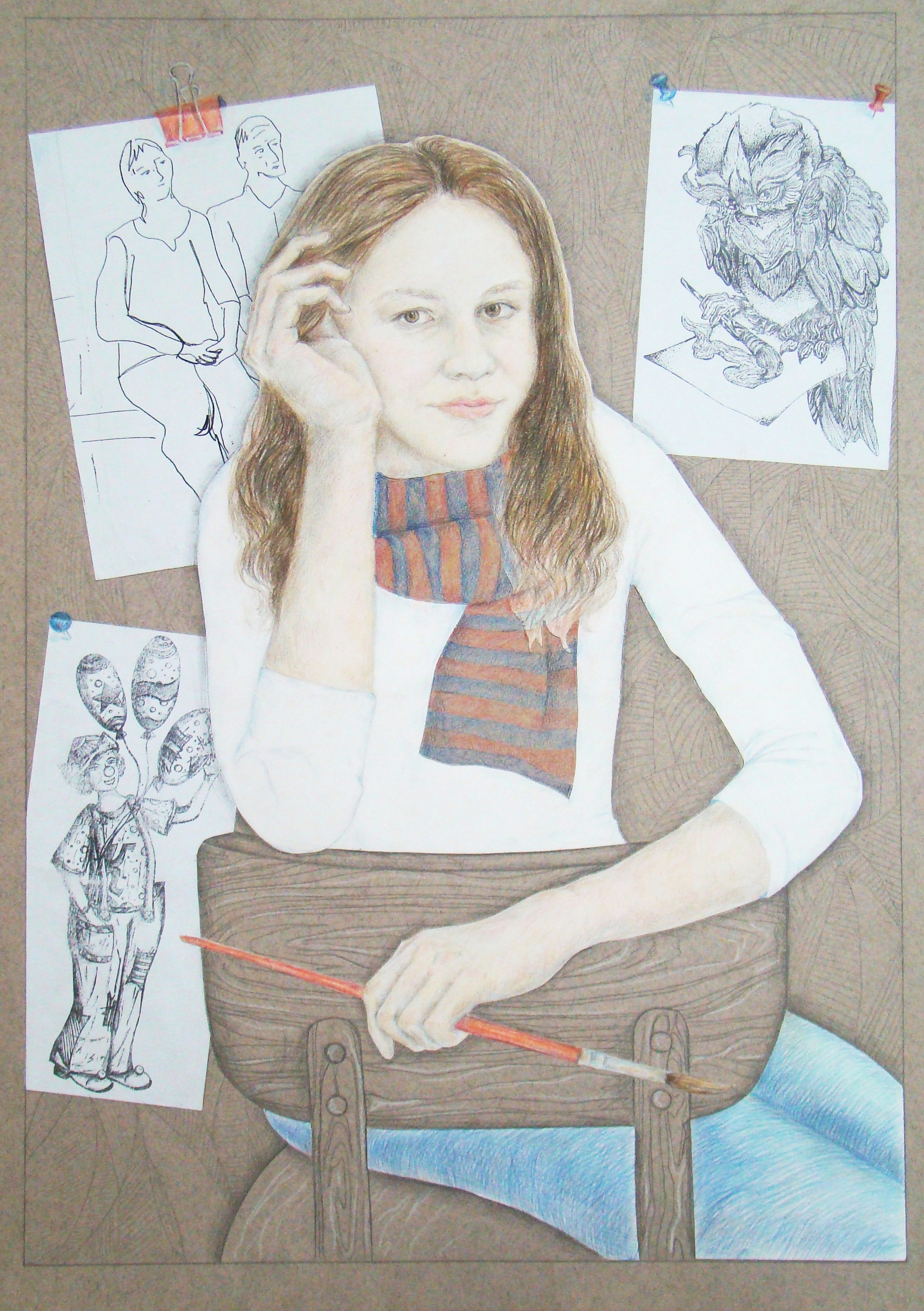 Казакова Софья, 16 лет. «Автопортрет». Бумага для пастели, коллаж, цветные карандаши, Удмуртия, г. Ижевск