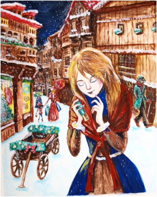 Ксения Миткевич, 16 лет. «Девочка со спичками». Бумага, акварель, гуашь. Эстония, г. Таллин