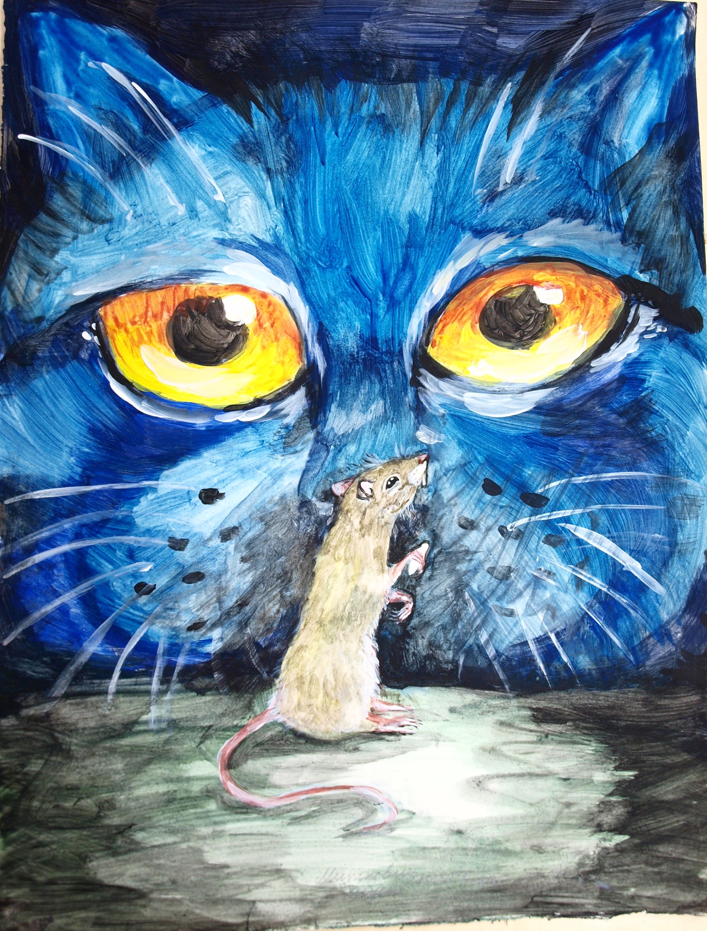 Ксения Миткевич, 16 лет. Иллюстрация к произведению Энно Рауд «Кошки-мышки». Бумага, акварель, гуашь. Эстония, г. Таллин