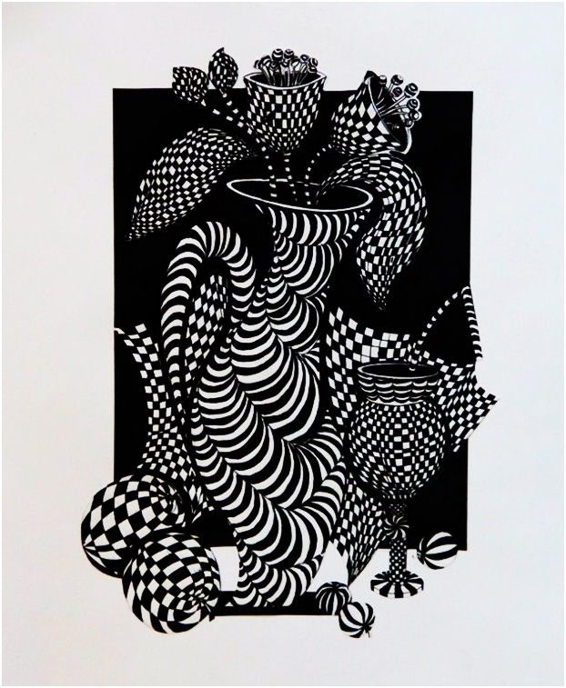 Недбаева Алена, 15 лет. «Графический натюрморт». Тушь, перо. Алтайский край, г. Яровое