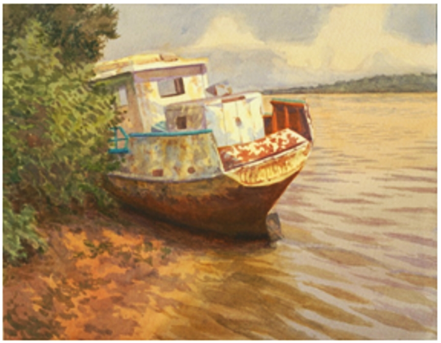 Спасибкина Вера, 16 лет. «Старый катер». Школа акварели Сергея Андрияки, г. Москва
