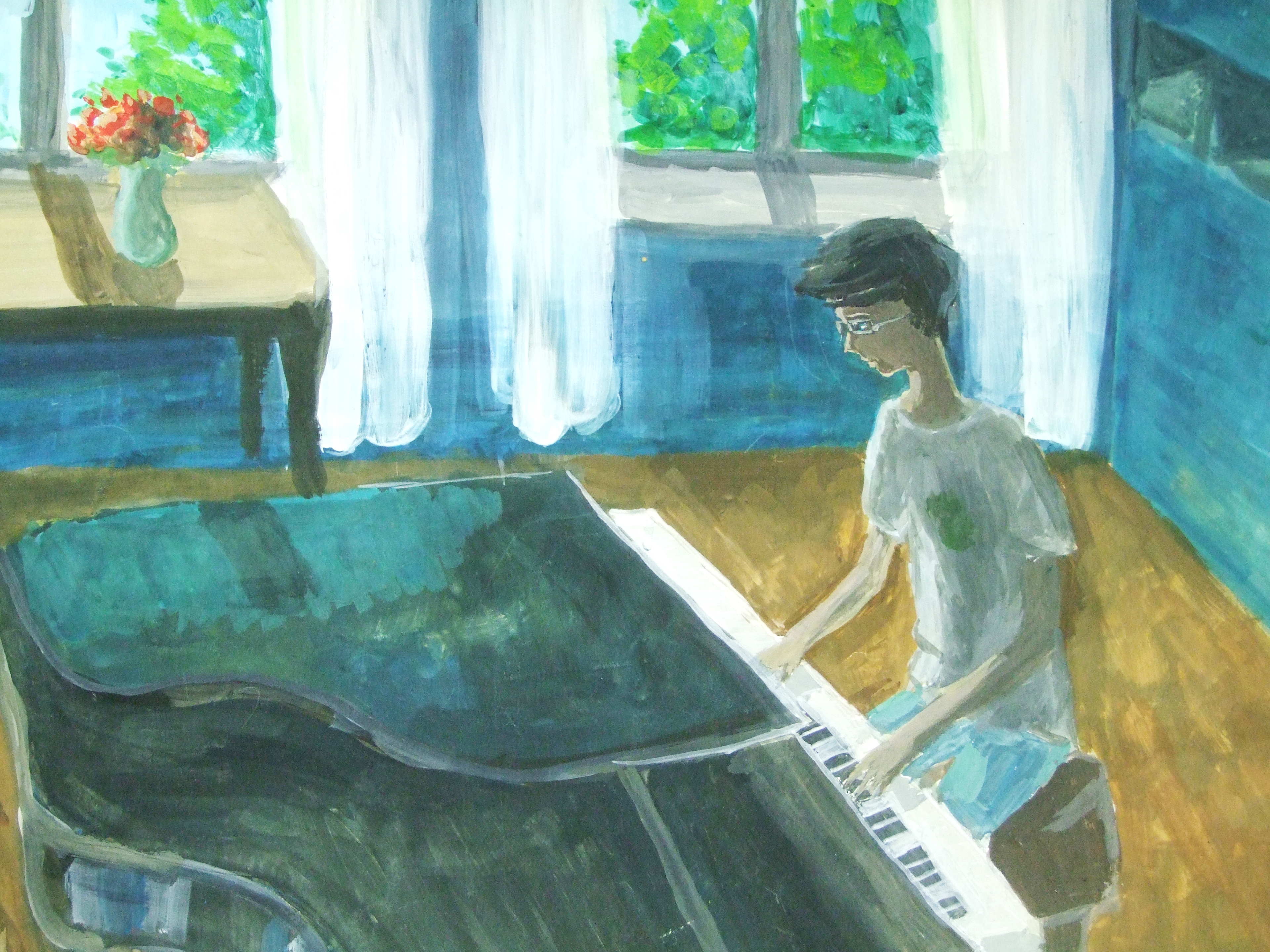 Ханова Юля, 14 лет. «Музыка». Бумага, гуашь. ДХШ № 7, г. Москва